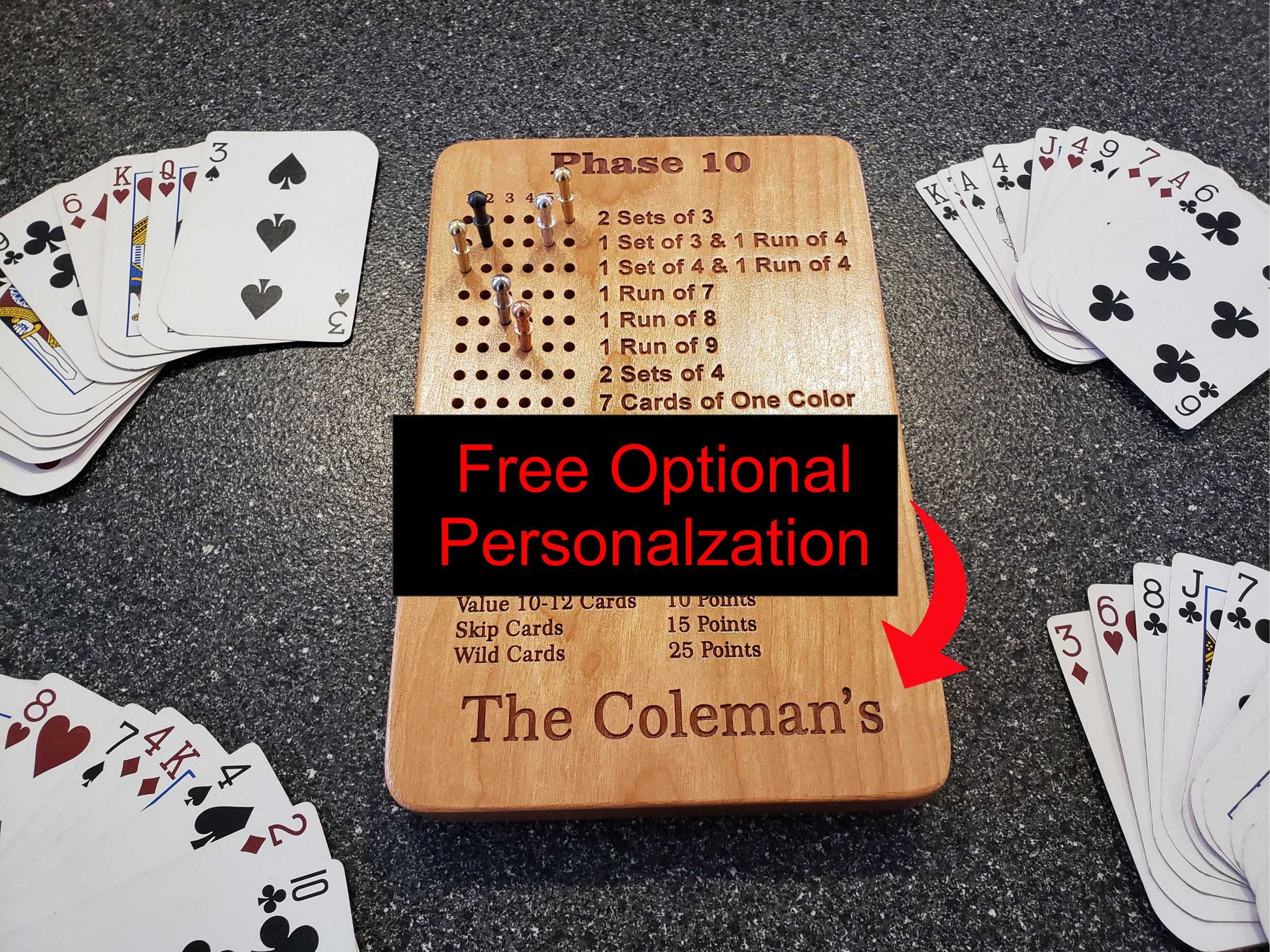 Say goodbye to messy paper scorecards and hello to a beautiful, handcrafted Phase 10 scoreboard that will elevate your game nights for years to come. Made from rich cherry wood, this elegant board keeps all 6 players organized and focused on what matters most — winning.